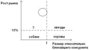 Для определения жизненного цикла услуги воспользуемся методом, предложенным Бостонской консалтинговой группой - построением матрицы BCG (рис. 2.6). Так как компания ИНВИТРО предлагает фактически один вид услуг – проведение независимых лабораторных исследований – то основной задачей будет являться правильное определение этапа жизненного цикла этого вида услуг.