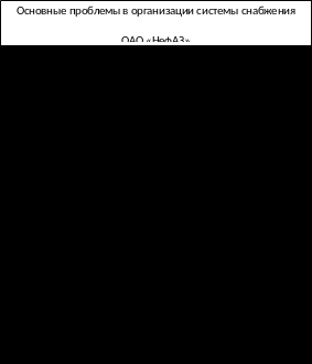 ОАО "НефАЗ" было создано, как самодостаточная вертикально-интегрированная структура с объединёнными стадиями производства и сбыта продукции, что в максимальной степени соответствовало условиям сохранения контроля за товародвижением и формированием финансовых потоков в контуре одной организации. Основное влияние на эффективность функционирования предприятия оказывает система снабжения. Проведенный анализ позволил выявить основные проблемы в организации системы снабжения ОАО "НефАЗ", которые можно отразить на рисунке 7.
