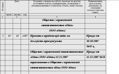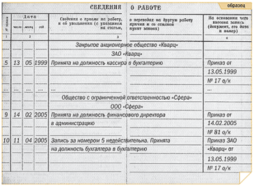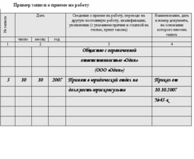 При внесении сведений о приеме на работу неверным является буквальное понимание некоторыми работниками кадровых служб требования о точном соответствии записей о приеме на работу тексту приказа. Например, не следует дословно воспроизводить текст приказа, а также условие о сроке договора, об испытательном сроке, факт работы на условиях неполного рабочего времени – все это обязательно должно быть указано в трудовом договоре и приказе о приеме на работу, но не в трудовой книжке. 22