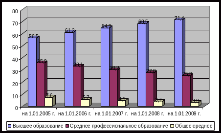 В УПФР по Колпинскому району на 1.01.2009 г. 71,4% сотрудников имеют высшее образование, 25,3% - среднее профессиональное.