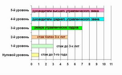 Система непрерывного внутрифирменного обучения персонала УПФР Колпинского района представляет собой централизованный и целенаправленный образовательный процесс, связанный с целями и задачами пенсионной системы. Участие в нем начинается со дня поступления на работу специалистов и руководителей, продолжается на всем протяжении их трудовой деятельности в УПФР и является обязательным условием служебного роста. Следует отметить, что непрерывное внутрифирменное обучение руководящего состава УПФР осуществляется параллельно с обучением по планам Пенсионного фонда РФ, разрабатываемых ежегодно для региональных отделений. В целях наибольшего охвата обучением сотрудников пенсионной системы Пенсионным фондом России и Отделением Пенсионного фонда России в России активно внедряется дистанционная форма обучения. Совместно с Современной гуманитарной академией проведено экспериментальное обучение по курсу повышения квалификацииначальников управлений (Отделов) ПФР в городах и районах на тему "Теория и практика управления. Актуальные вопросы по основным направлениям деятельности Пенсионного фонда Российской Федерации" с использованием дистанционных образовательных технологий и средств телекоммуникаций. С июля по сентябрь будет проведено обучение на курсах повышения квалификации с использованием дистанционных образовательных технологий 570-ти руководителей и специалистов подразделений назначения, перерасчета пенсий, оценки пенсионных прав, клиентских служб на тему "Организация назначения пенсий. Правовое регулирование пенсионного обеспечения и страхования в Российской Федерации". Общее количество участников обучения ежегодно увеличивается. Для работников УПФР предусмотрено 5 уровней обучения (рисунок 2):