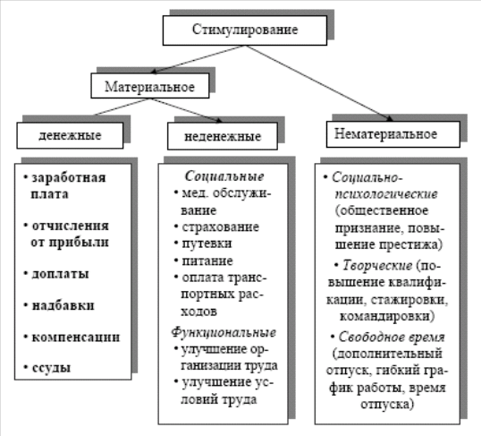 Таким образом, мотивация персонала является одним из направлений работы по управлению человеческими ресурсами в организации. Мотивация представляет собой процесс побуждения человека к определенной деятельности с помощью внутриличностных и внешних факторов. Одной из разновидностей целенаправленных внешних побуждающих воздействий (условий деятельности) является стимулирование.