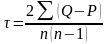 где P – число случаев, когда ранг признака Y у следующих наблюдений меньше, чем у данного;