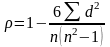 где d – разность рангов признаков X и Y;