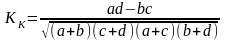 Для случаев, когда один из показателей отсутствует, значение коэффициент ассоциации Юла (КА) будет неадекватно отражать оценку степени тесноты связи между признаками, в этих случаях следует использовать коэффициент контингенции Пирсона, при этом следует учитывать, что его значение несколько занижено по сравнению с коэффициентом ассоциации: