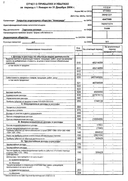 В течении отчётного периода ЗАО "Александр" приняло меры за счёт уменьшения своей кредиторской задолженности - на 4 млн. 723 тыс. 720 руб.