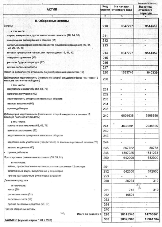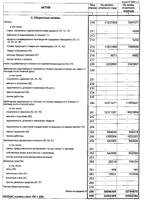 В группе медленно реализуемых активов увеличились запасы товаров для перепродажи и сокращена сумма налога на добавленную стоимость по приобретённым ценностям, при этом уменьшились долгосрочные обязательства предприятия, что свидетельствует о стремлении ЗАО "Александр" расширить свою торговую деятельность.