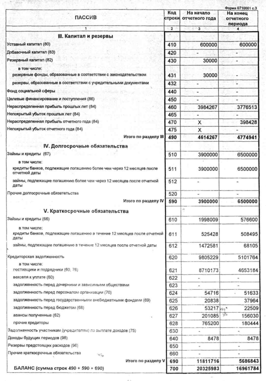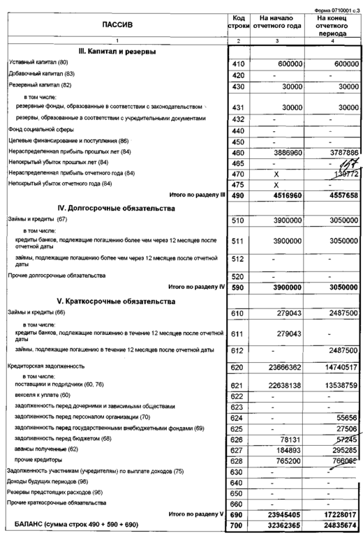 4) Постоянные или устойчивые пассивы: итоги по разделу "Капитал и резервы".