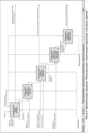 | Заявка по корректировке изменений, данные о тематических разделах, "Бриф" на разработку оригинал – макета клиента, договор с клиентом, технические требования подрядчиков. | Утверждение руководством новых разработок, утверждение оригинал-макета клиентом, тиражирование (выпуск) издания. |