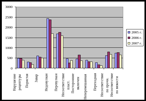 На рисунке 1 показана структура о дефектах на ЗМШ, связанных с качеством за 2005-2007 гг.