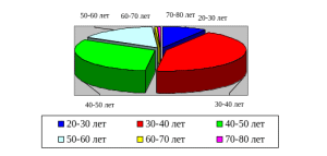 Как видно из рисунка 1, 43% работников ООО «ТНГ-Групп» находятся в возрастном промежутке от 30 до 40 лет. 31% работников находится в возрасте от 40 до 50 лет, следующем по численности является интервал от 50 до 60 лет (16%), работников моложе 30 лет в ООО «ТНГ-Групп» 9%, а старше 60 лет – 1%, как правило это работники, проработавшие более 30 лет в данной организации и имеющие большой опыт.