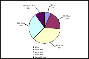 Возраст: до 30 лет – 6,8 %; от 30 до 40 лет – 19,3 %; от 41 до 50 лет – 36,6 %; от 51 до 60 лет – 27,6 %; свыше 60 лет – 9,7 %. Из приведенных данных видно, что в основном на ОАО «Курганхиммаш» специалисты зрелого возраста от 41 до 50 лет.