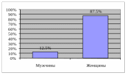 Как видно на рисунке, в процентном соотношении мужчины составляют 12,5 %, а женщины - 87,5 %, что является большинством. Это обусловлено высоким процентом женщин в ресторанной бизнесе. В абсолютном соотношении в ООО «Невада» работает 5 мужчин и 20 женщин.