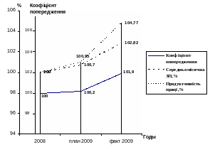 Наведені дані показують, що на аналізованому підприємстві темпи росту продуктивності праці випереджають темпи росту оплати праці. На малюнку 2.6 показана динаміка показників та праці й заробітній платі.