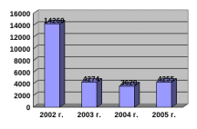 В период с 2002 года по октябрь 2004 года количество выпускаемых подшипников снижалось. В октябре 2004 года произошел перелом, наметился рост объемов производства. Это означает, что завершены: основная реконструкция, переезд, реорганизация.