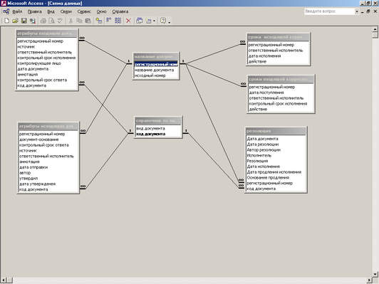После того, как все связи между таблицами будут установлены, схема данных для БД АРМ «Секретаря» будет имеет следующий вид (рис. 1):