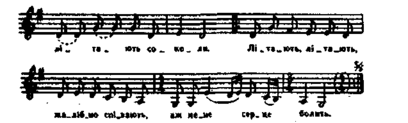 - В: Так, правильно, цю пісню танцюють переважно на весіллях, вона має моменти театралізованих сценок. А мелодію пісні ви не чули ніде?