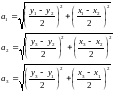 Определим размеры отрезков а1, а2, а3 — хорд между координатными точками: