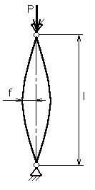 Если сжимающая сила Р стремится к эйлеровой критической силе, , прогиб быстро возрастает. Если до загружения стержень (рессора) имела начальное искривление, которое приближенно можно считать синусоидой с одной полуволной и амплитудой f0, то при действии продольной силы Р дополнительный прогиб посредине будет равен: