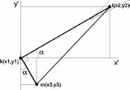 Далее определим величину угла , угла между прямой KL и осью ОХ’ и равному ему, как углу со взаимно перпендикулярными сторонами, углу между прямой KM и осью OY’: