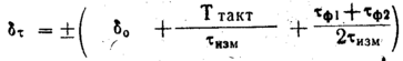 Относительная погрешность измерения интервалов времени при длительности фронтов измеряемых импульсов не более половины периода сигнала заполнения не должна превышать значения, определяемого по формуле: