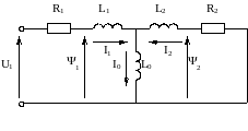 Установившемуся режиму работы АД (все производные в фомуле равны нулю) системе соответствует T-образная схема замещения АД, изображенная на рисунке 1, где I - ток намагничивания АД; 1 - частота питающей сети.