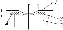 При сварке лепесткового вывода к кристаллу БИС, одним из вариантов может быть схема, представленная на рис. 8 В этом случае алюминиевый вывод закреплен на полиимидных рамках (внутренней и внешней частью относительно сварного соединения).