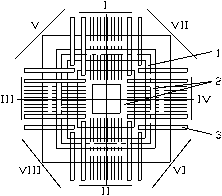 При монтаже лепестковых выводов на контактные площадки кристалла для снижения механических напряжений, возникающих из-за неравномерного деформирования и возможного смещения защитных полиимидных рамок необходимо проводить сварку выводов в определенной последовательности - рис. 12.
