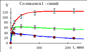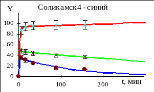 Из примесных химических элементов, обнаруженных в исследуемых образцах, наибольший вклад в суммарную концентрацию несут такие элементы как: Si-0,25 г/т в образце Соликамск1, Mg-0,15 г/т в Соликамске4, Ti-0,025 г/т и La-0,02 г/т в Соликамске2. Других элементов, концентрации которых возможно внесли бы более весомый вклад в сумму концентраций примеси, проведенным методом обнаружено не было. В заметке П.Н.Чирвинского о синей каменной соли Соликамского месторождения [14], можно найти результат анализа синей соли: NaCl - 98.17, KCl+RbCl - 0.54, MgCl2 0.07. Из этого результата можно почерпнуть наличие рубидия и калия, радиоактивные долгоживущие изотопы которых могли быть теми элементами, излучение которых в течение длительного времени, привело к образованию центров окраски - F-агрегатных центров.
