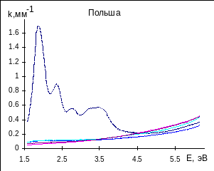 Рис.5. Все разновидности спектров оптического поглощения образцов из Соликамска и Польши.