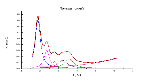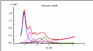 Рис.6. Декомпозиция спектров оптического поглощения Польской синей каменной соли.