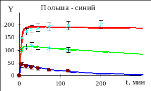 Для получения спектрального состава поглощения в синей соли и нахождения точного положения полос спектры поглощения были разложены на отдельные Лоренцевы составляющие: