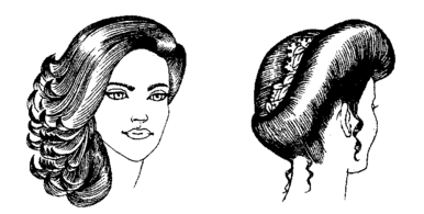 В вечерних прическах присутствуют украшения (из волос, цветов, перьев и т. д.).