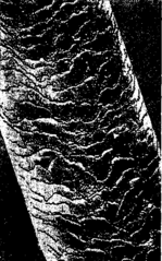 кутикула - наружный слой, состоящий из бесцветных клеток, образует защитную поверхность волоса. Кутикула защищает волос от перегрева и высыхания, регулирует поступление химических веществ. Клетки этого слоя перекрываются черепицеобразно. Если вы потрете волос в направлении от корня к концу, вы ощутите, какой он гладкий, однако если попробуете сделать то же самое, двигаясь от конца к корню, он покажется вам шершавым24.
