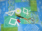 Изготовление лоскутного изделия (почти каждого) начинают с подготовки шаблонов, по которым кроят. Они могут быть самых различных форм и размеров: квадратные, треугольные, в виде ромбов и т.д.