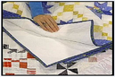 Так как одними и теми же шаблонами приходится пользоваться не один раз, их делают из прочных материалов: толстого картона, пластика, оргстекла. Самые удобные — из оргстекла или прозрачного светлого пластика: через них при раскрое виден рисунок ткани. Шаблон делают так: вычерчивают на картоне нужный контур шаблона без припуска на шов, затем со всех сторон добавляют на припуск (5-10 мм или размер ширины лапки) и проводят второй контур (внешний). Теперь подкладывают под картон что-нибудь плотное, чтобы не прорезать стол, и острым ножом или скальпелем сначала режут по внутреннему контуру, а затем по внешнему. Получают шаблон с окошком (рамка). Так как постепенно у лоскутницы шаблонов накапливается довольно много, то на них нужно ставить размер. При раскрое рамку накладывают на изнаночную сторону лоскута и обводят окошко и внешний контур. Если ткань темная, то кусочком мыла или мелом, если светлая — простым карандашом, но не шариковой ручкой.
