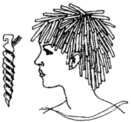 Вертикальная - при этом способе волосы накручивают на коклюшки в обратном порядке - от корней волос к их концам, равномерно распределяя волосы по всей длине коклюшки (разных диаметров, конусообразной формы).