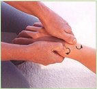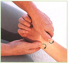 | 5. Зігніть руку масажованого і поставте її на лікоть. Обхватіть зап'ясток «в замок» і, злегка стискаючи, масажуйте по напряму вниз, до ліктя | ||