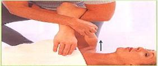 | 6. Візьміться правою рукою за зап'ясток, ліву руку підведіть знизу під лікоть, великий палець зверху. Далі заведіть гроно зігнутої в лікті руки масажованого до протилежного плеча і, притримуючи, залиште в цьому положенні 7. Обхватіть «в замку» руку партнера під ліктем і далі плавним стискаючим рухом рук масажуйте вниз, у напрямку до плеча. | ||