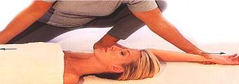 | 9. Покладіть гроно партнера на його ліве плече. Встаньте на коліна і підставою лівої долоні натиснете на праве плече партнера, а підставою правої долоні – на його лікоть. Тепер одночасно, в напрямі від себе, промассируйте обидві ділянки - плече і лікоть | ||