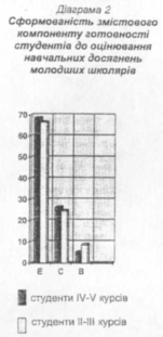 Окремим аспектом кількісно-якісного аналізу статистичних даних є встановлення динаміки сформованості готовності студентів II-V курсів до оцінювання навчальних досягнень молодших школярів (рис.2).