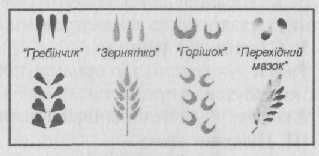 "Зернятко" — мазок, який починається найлегшим дотиком, а закінчується найбільшим натисканням. Коли мазки "зернятко" накладені по обидва боки стеблини вістрями назовні, зображення нагадує колосок.