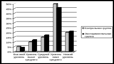 Таким образом, мы видим, что по результатам констатирующего эксперимента различия между контрольной и экспериментальной группой несущественны, в обеих группах преобладает уровень профильной направленности личности ниже среднего.