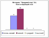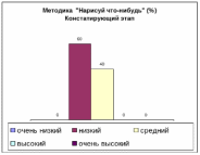 По диаграммам трех методик видно, что у большинства учащихся развитие воображения находится на очень низком и низком уровнях и лишь небольшая часть учащихся обладает средним уровнем развития воображения, а высокий и очень высокий уровни вообще отсутствуют.