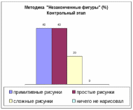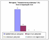 Для определения уровня развития воображения у учащихся отобрано три методики: "Незаконченные фигуры", "Придумай игру", "Нарисуй что-нибудь". Каждая методика подразумевала выполнение какого-то задания, которое в конце оценивалось в соответствии с критериями. После чего результаты методик обрабатывались, и было видно, на каком уровне развития находится воображение учащихся. Затем на основе результатов строилась диаграмма. Так на учащихся 8 класса Ермаковской средней школы проводилась опытно-экспериментальная работа. На констатирующем этапе необходимо было определить, каким уровнем воображения обладают учащиеся. При проведении методики "Незаконченные фигуры" учащимся раздавались листы бумаги с нарисованными на них фигурками (кругами, квадратами, треугольниками, разными ломаными линиями и т.д.).