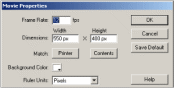 В этом же окне можно устанавливать также размеры ролика в пикселях или других единицах, которые можно выбрать в раскрывающемся списке Ruler Units (Единицы измерения) в нижней части этого окна, и цвет фона. Теперь чтобы запустить анимацию нужно нажать клавиши CTRL+ENTER, и на экране появится "пляшущий человечек"