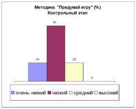 Из выше приведённых диаграмм видно, что уровень развития воображения у учащихся 8 класса повысился. Высокий и очень высокий уровни развития воображения по прежнему отсутствуют, но количество учащихся обладающих низким и очень низким уровнем развития снизилось, а средним повысилось.