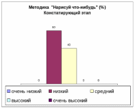 В практической части опытно-экспериментальной работы сначала с помощью подобранных методик был выявлен уровень развития воображения учащихся 8 класса. Результаты этих методик показали, что уровень развития воображения данного класса в основном находится на очень низком и низком уровне развития, лишь небольшая часть на среднем.