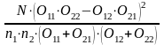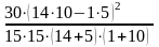 N =30, n1 = 15, n2 = 15, 011 = 14, 012 = 1,