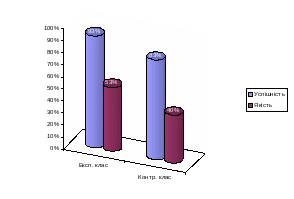 Контрольний зріз знань та вмінь, який був виконаний під час проведення експерименту, що успішність знань в експериментальному класі підвищилась з 83% до 95%, а якість з 35% до 57%, в контрольному класі ці показники слідуючі: успішність – з 79% до 85%, а якість з 39% до 51%.